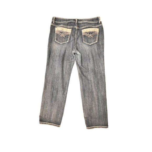Great denim jeans from Chico's. Lots of glam and bling on the back pockets and a bit on the front pockets along with silver embroidery.