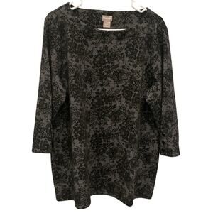 Chico Womens Top Size XL 3 Black Lace Print Workwear Office Business Fall Career