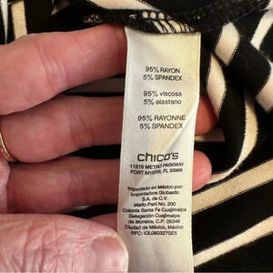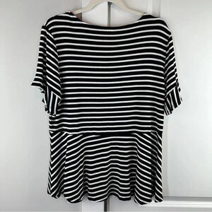 Chico black and white striped peplum blouse top soft Classic size 2 Large 12/14