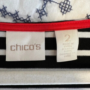 Chico black and white striped peplum blouse top soft Classic size 2 L 12/14