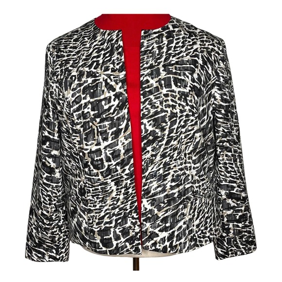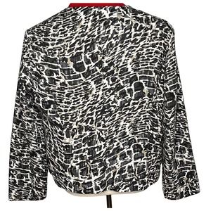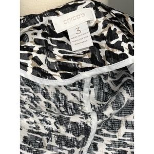 Chico women's jacket blazer black white brown open front faux pockets cotton 3