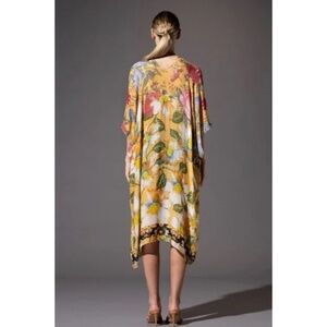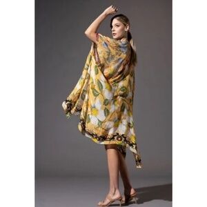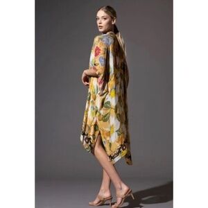 Chicory Yellow Floral Border Open Wrap Kimono Top One Size