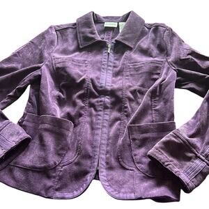 Chico’s 0 Purple Corduroy Jacket Woman Size 4 Zip Front Pockets