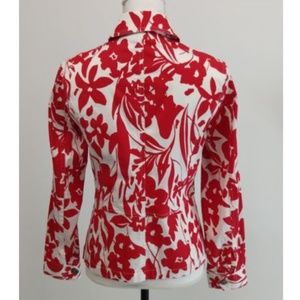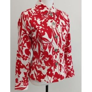 Chico's Women's Size 0 Red & White Floral Light Weight Button Front Jacket
