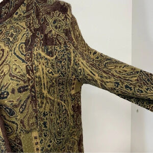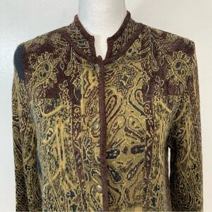 Chicos 0 Sweater Jacket Small Brown Print Button Front Long Sleeve Cardigan