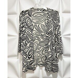 Chico's 0 Sz S Black Slinky Psychedelic Geo Print Cardigan Jacket Pockets