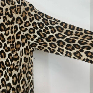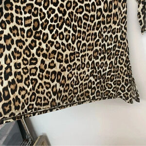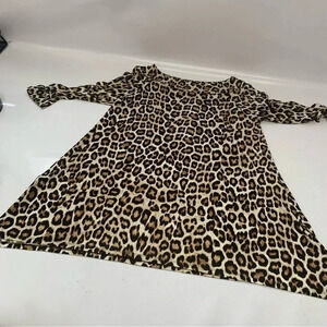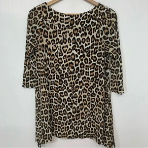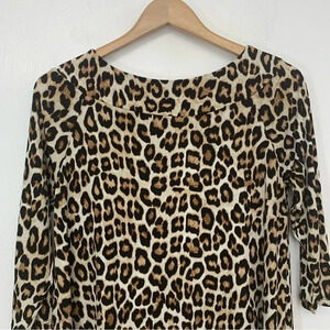 Chicos 0 Top Shirt US Small Brown Animal Print Tunic Boat Neck 3/4 Sleeve Work