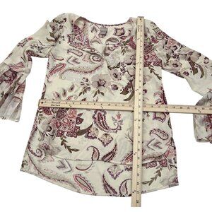 Chicos 0 small Boho Paisley Floral Print Sheer Bell Sleeve Blouse Top - Cream/Pu