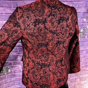 Chicos 00 Jacket XS Sz 2 Paisley Damask Red Black Beaded Pockets