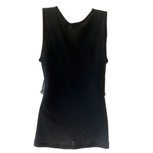 Black nylon mesh stretch knit ruffle tiered tunic top is sleeveless