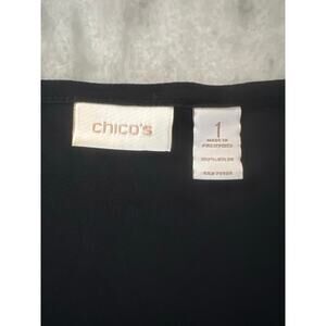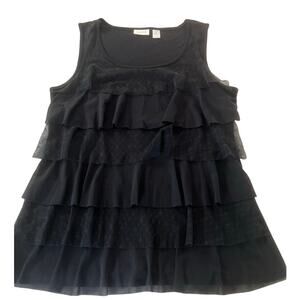 Chico’s 1 Black Ruffled Tiered Tunic Top Woman Size 8 Sleeveless Dressy Casual