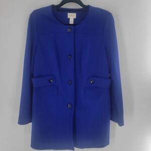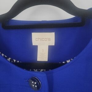 Chico’s 1 Blue Dress Coat Jacket Button Front