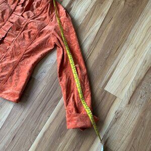 Chico’s 1 Chambray Corduroy Ruffled Lined Orange Rust Open Front Jacket Size 8