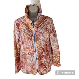 Chico's 1 Lightweight Front Zip Jacket Leaf Print High Neck Drawcord Womens M 8