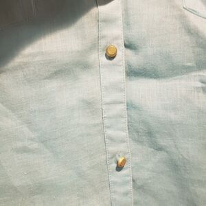 Chicos 1 Long Sleeve Light Aqua Shirt Blouse 100% Linen