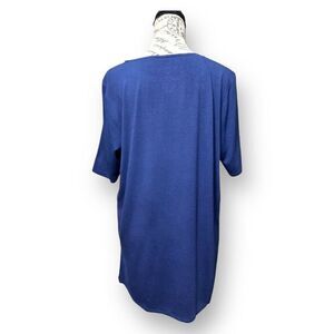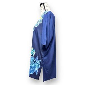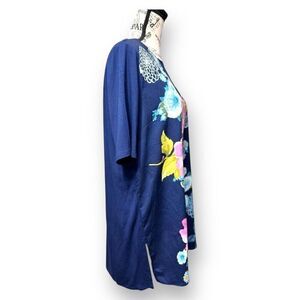 Chico’s 1 (M) Navy Blue Floral Print Tunic Top Short Sleeve Boho Resort Casual