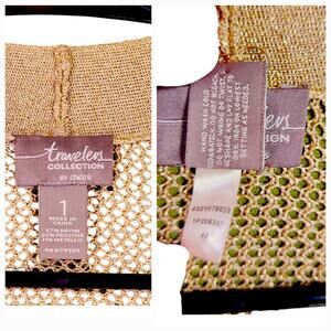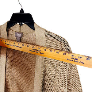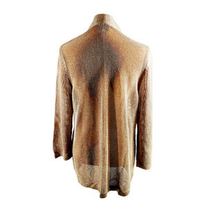 Chicos 1 M Womens Metallic Mesh Cardigan Sweater Gold Open Front Pockets Holiday
