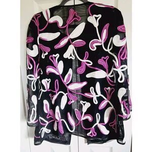 Chico's 1 Mesh Floral Embroidered Jackets Size Medium Purple Black White