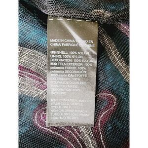 Add a pop of color to your wardrobe with this Chico's jacket! The floral pattern and embroidered accents make it a perfect choice for any occasion, whether it's a casual day out or a party. The hook and eye closure and collared neckline add a touch of sophistication, while the long sleeves and short length keep you comfortable in any season. Hand wash only, this jacket is made of nylon mesh fabric with no lining material. Available in size medium, this classic fit jacket is a must-have for any women's wardrobe.
