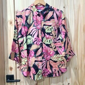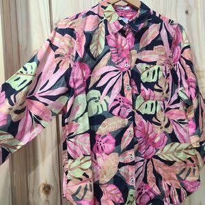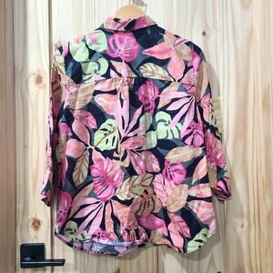 Chicos 1 No Iron Fresh Chic Linen Tropical Button Up 3/4 Sleeve Top Size 8/10