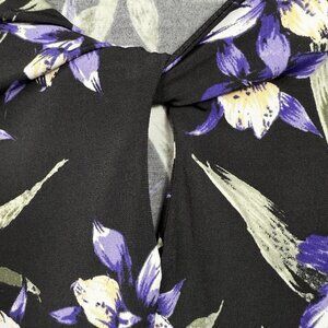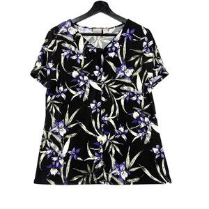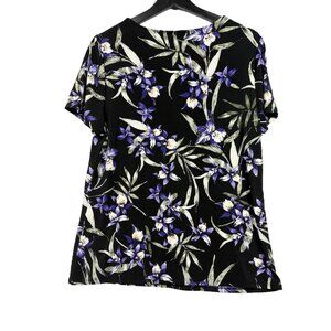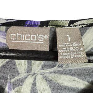 Chico's 1 Short Sleeve Floral Top Twist Key Hole Neck Size M / 8 Pockets