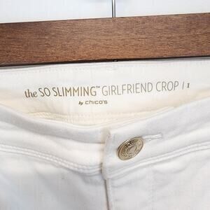 Chicos 1 So Slimming Girlfriend Crop Jeans Size M 8 White Stretch Denim Classic
