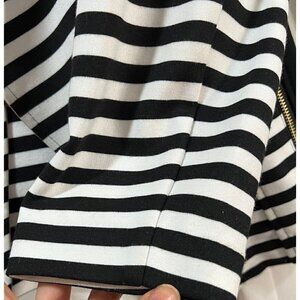 Chico's 1 Sz M Black Striped Moto Jacket Blocked Ponte Knit Tuxedo Blazer
