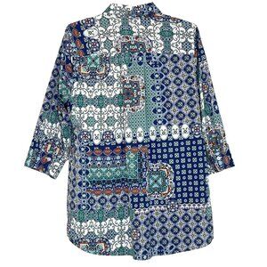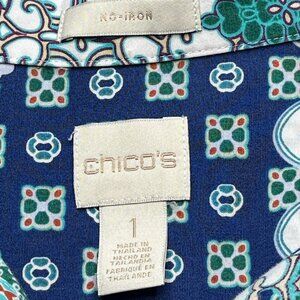 Chicos 1 Top Button Up No Iron Artsy Boho 3/4 Sleeve