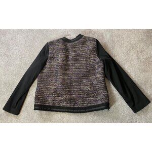 Chicos 1 Tweed Metallic Jacket W/ Black Stretch Sleeves & Fringe Hem Medium