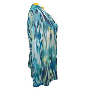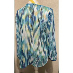 Chico’s 1 US Size 8 Sheer Blouse Top Long Sleeve Blue‎ White Abstract Design