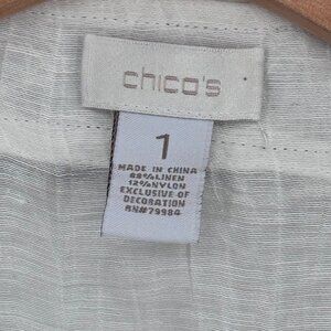 Chicos 1 Womens Linen Blend jacket Embellished black Trim Size medium
