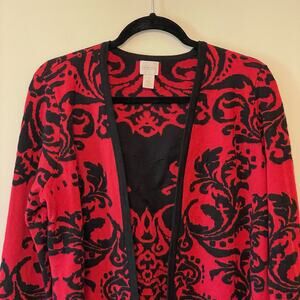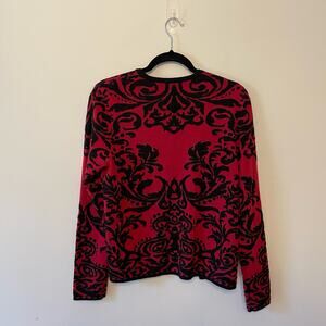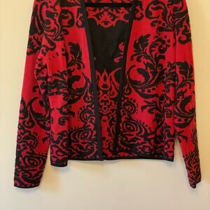 Chico’s 1 cardigan red black Victorian modern boho cozy wool classic corpcore
