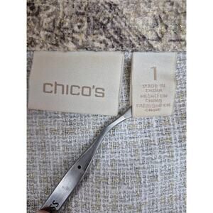 Chicos 1 long Blazer Beige Sequined Gold Metallic Animal Print Jacket Sz S/M -Multicolor