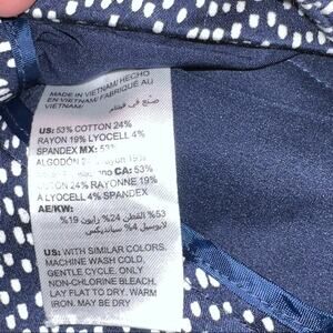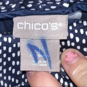 Chico’s 1 midnight blue w white polka dots straight leg casual pants size 8 B141