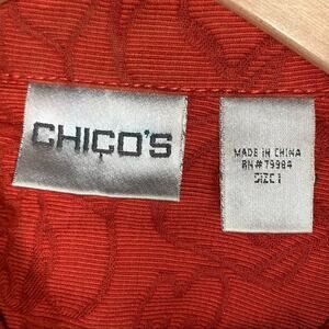 Chico’s 1 rust red flower print zippered lightweight jacket size medium 8
