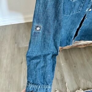 Chico’s 100% Blue Denim Cotton Shirt w/ Metal Buttons and Roll Tab Sleeves