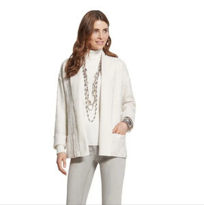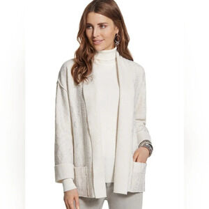 CHICO'S very stylish and elegant ivory 100% boiled wool jacket.