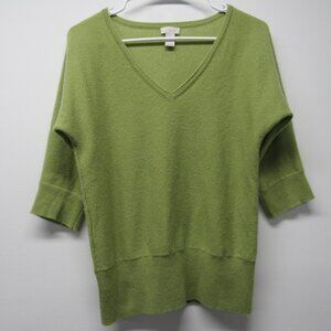 Chicos 100% Cashmere Green V Neck Half Sleeve Sweater sz 1 US Small