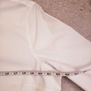 Longline with a pleat in the back, this shirt has sparkly accent buttons at the collar and on both cuffs!. The button placket is covered and both collar and cuffs have black trim for a clean, crisp look!