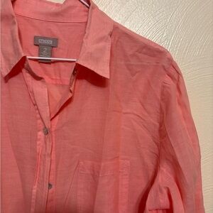 Chico’s 100% Cotton Coral Button-Front Shirt (Size 2 / L)