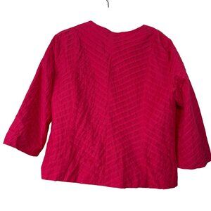 Chico's 100% Cotton Pleated Boxy 3/4 Sleeve Vibrant Pink Jacket Size 2 Large