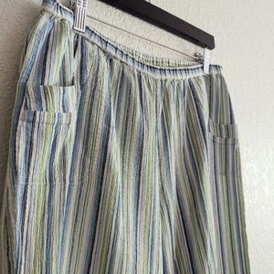 Beautiful lightweight material. Excellent quality and condition. Elastic waist. No flaws. Chico's 2 is equivalent to a size 12.