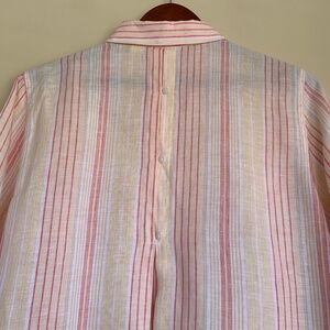 Chico's 100% Line Striped Button Down Shirt 2 or M-L Tunic Coastal Travel Top
