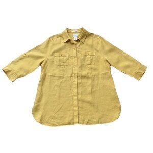 Chico’s 100% Linen 1/4 Button Front Tunic Shirt Top Yellow Size 12 Popover