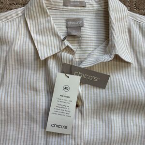 Chico's 100% Linen Button Down Shirt Women's 0 / US 4-6 Stripe Roll Sleeve NWT