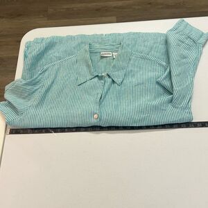 Chico’s 100% Linen Button Down Shirt Women’s Size 3 (XL) Aqua Blue White Stripe