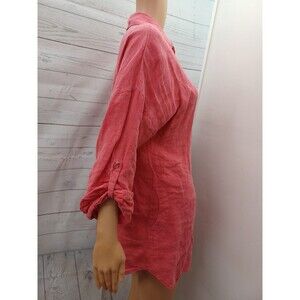 Chicos 100% Linen Button Up Top Tunic Sz 0 (Small) Red Roll Tab Sleeves