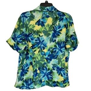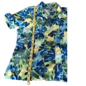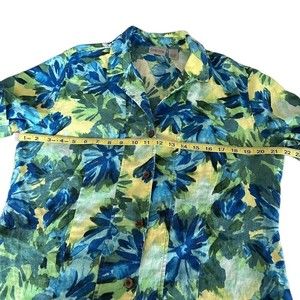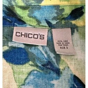 Chico's 100% Linen Cobalt/ Green Floral Button Up Blouse Size 2(L)12