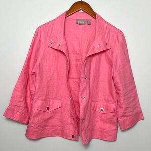 Chico’s 100% Linen Coral Snap Button Jacket Sz M