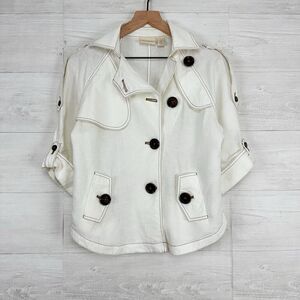 Chico’s 100% Linen Cropped Trench Jacket Women Small White Roll Sleeve Pockets